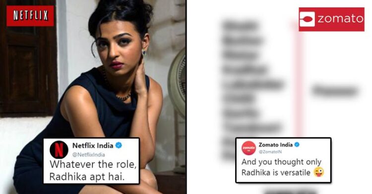 Showing up their obsession with Radhika, Netflix released a video featuring the actress with a caption, “Whatever the role, Radhika apt hai.”